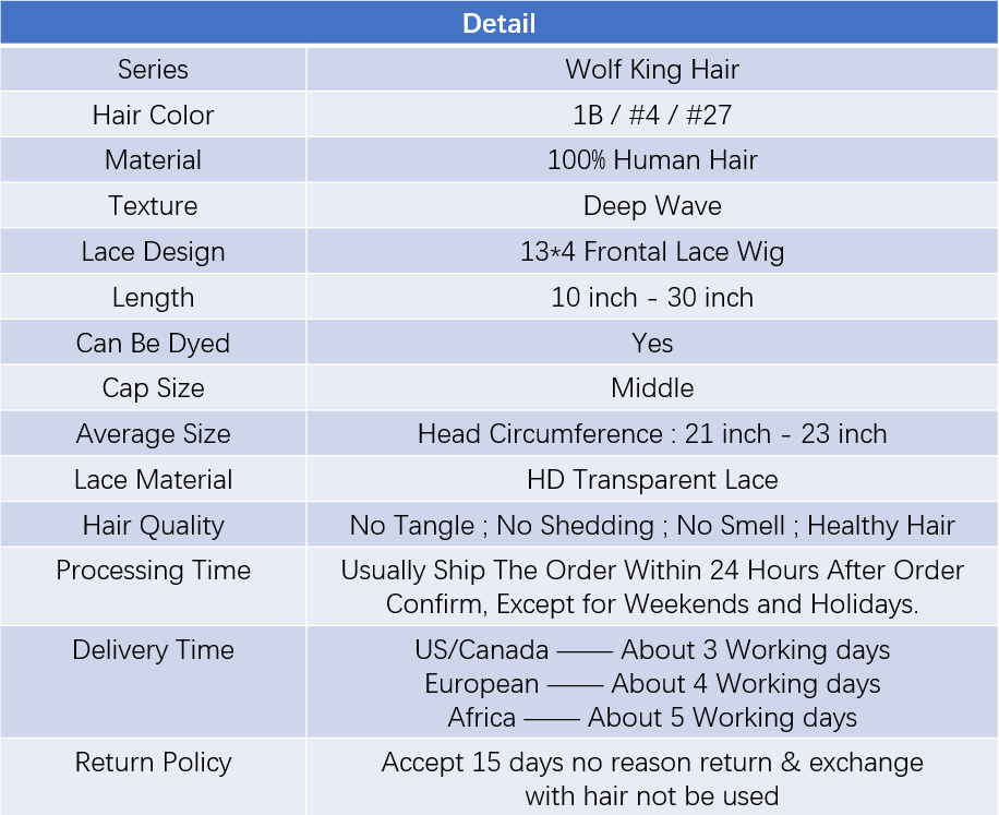 Wolf king 1B/4#/27# deep wave 13*4 HD transparent frontal lace wig 150% Density