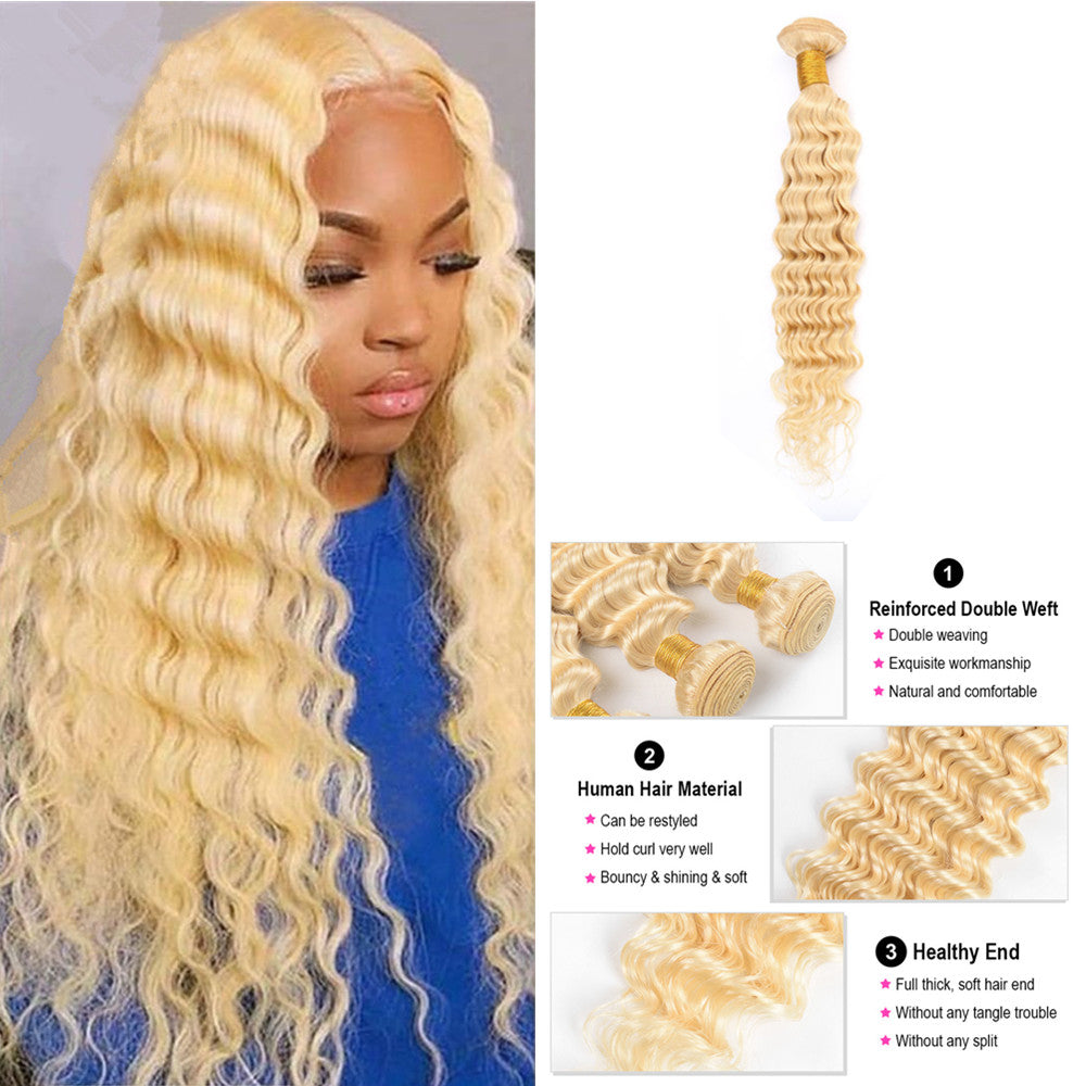 Wolf king 613# deep wave 1 bundle 613# color virgin human hair weft