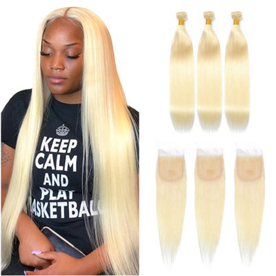 Wolf king 613# straight wave 3 bundles with 4*4 HD transparent closure virgin human hair weft