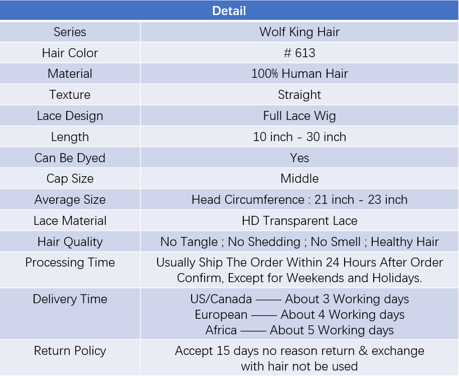 Wolf king 613# straight wave HD transparent full lace wig 150% Density