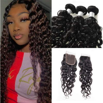 Wolf king natural wave 4 bundles with 4*4 HD transparent closure natural color 100% human hair