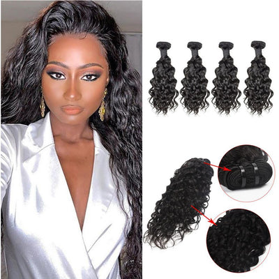 Wolf king water wave 4 bundles natural color virgin human hair weft