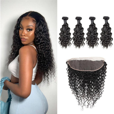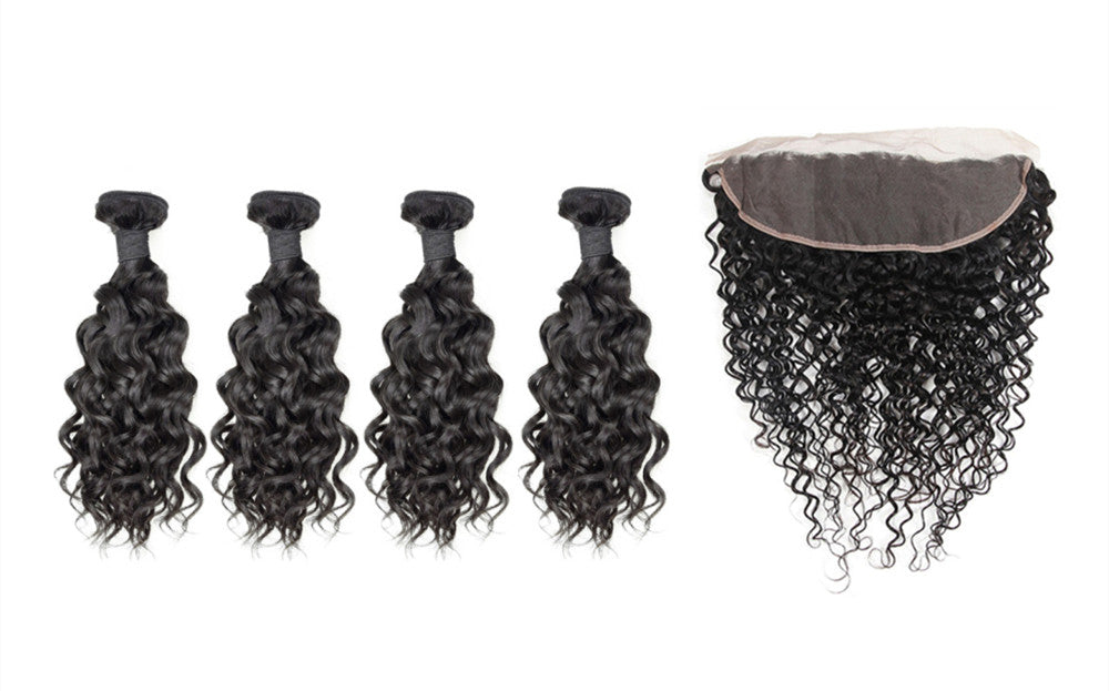 Wolf king water wave 4 bundles with 13*4 HD transparent frontal natural color virgin human hair weft