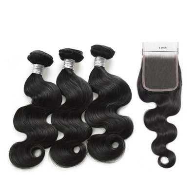 Wolf king body wave 3 bundles with 5*5 HD transparent closure natural color virgin human hair weft