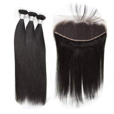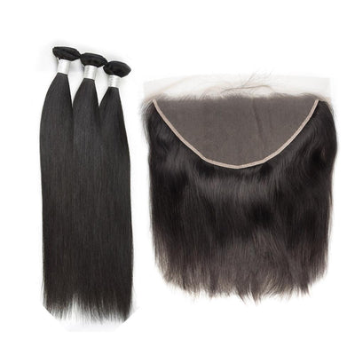 Wolf king loose wave 3 bundles with 13*4 HD transparent frontal natural color virgin human hair weft