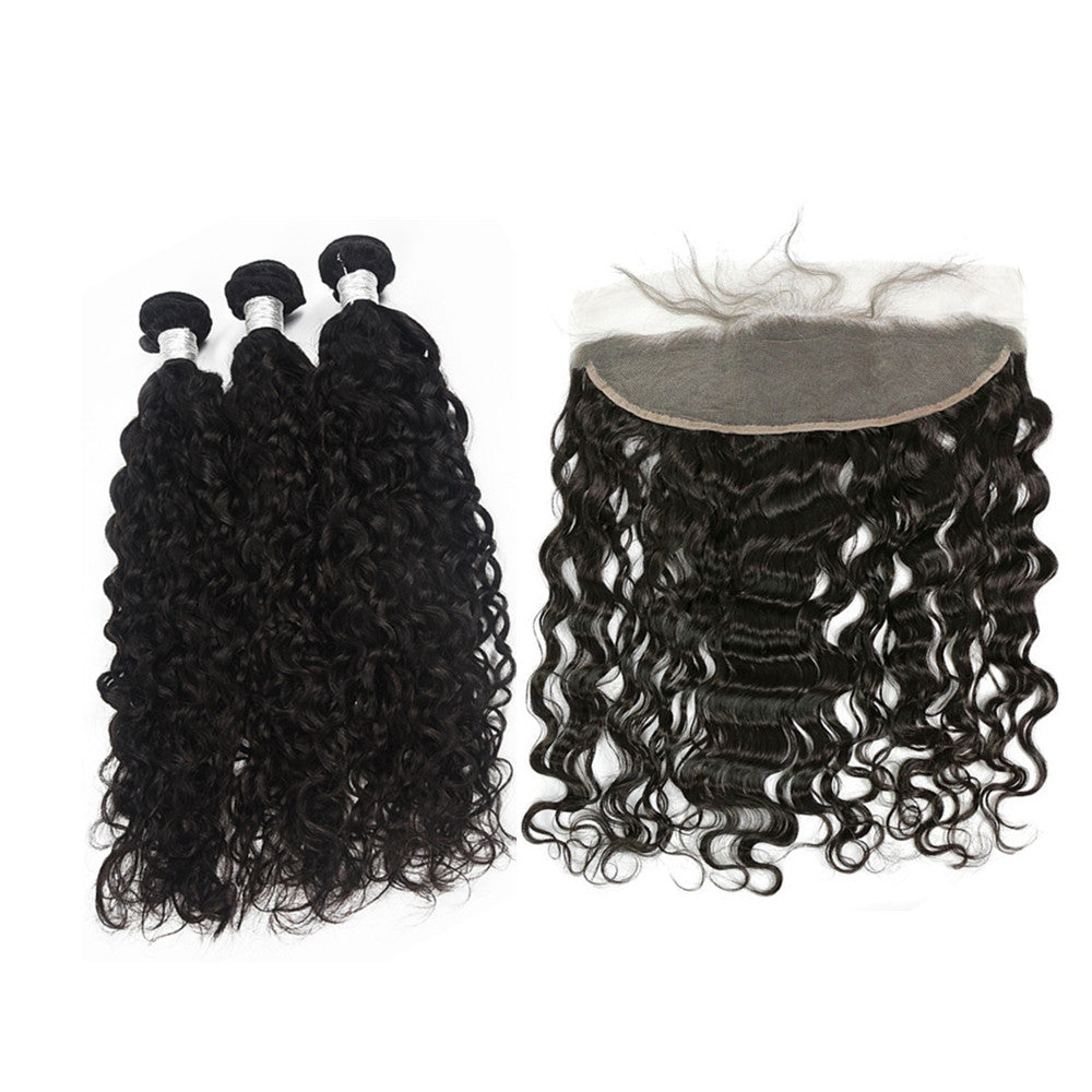 Wolf king natural wave 3 bundles with 13*4 HD transparent frontal natural color virgin human hair weft