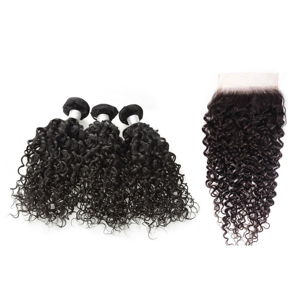 Wolf king curly 3 bundles with 5*5 HD transparent closure natural color virgin human hair weft