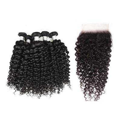Wolf king curly 4 bundles with 5*5 HD transparent closure natural color virgin human hair weft