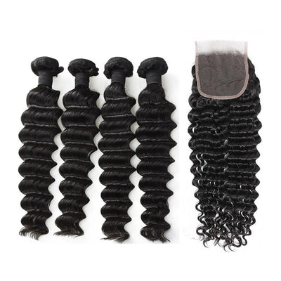 Wolf king deep wave 4 bundles with 4*4 HD transparent closure natural color virgin human hair weft