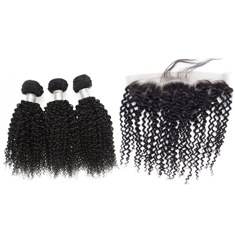 Wolf king kinky curly 3 bundles with 13*6 HD transparent frontal natural color virgin human hair weft