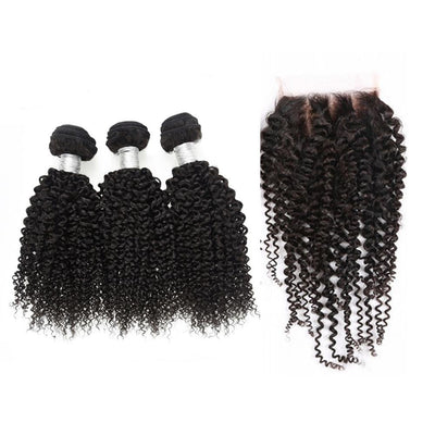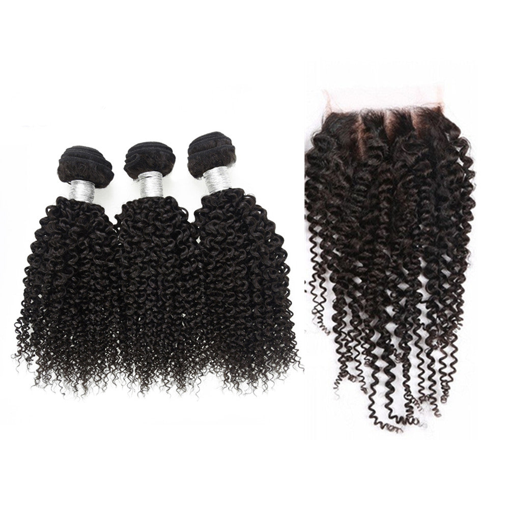 Wolf king kinky curly wave 3 bundles with 5*5 HD transparent closure natural color virgin human hair weft