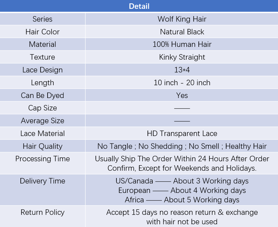 Wolf king kinky straight wave 13*4 HD transparent lace frontal