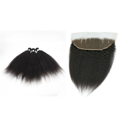 Wolf king kinky straight wave 3 bundles with 13*4 HD transparent frontal natural color virgin human hair weft