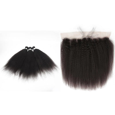 Wolf king kinky straight wave 3 bundles with 13*6 HD transparent frontal natural color virgin human hair weft