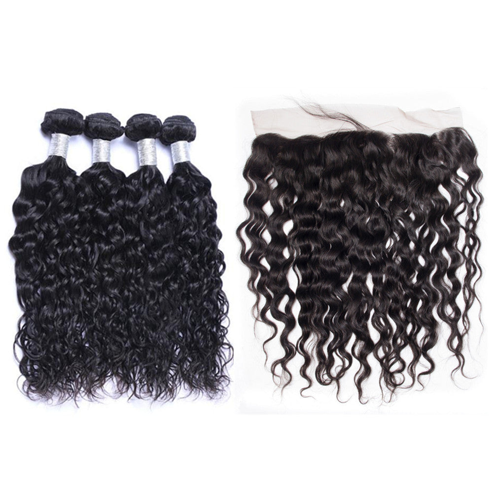 Wolf king natural wave 4 bundles with 13*6 HD transparent frontal natural color virgin human hair weft