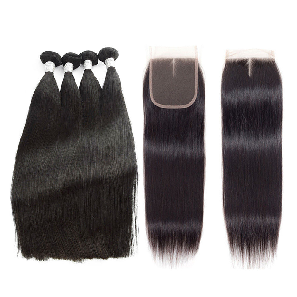 Wolf king straight wave 4 bundles with 5*5 HD transparent closure natural color virgin human hair weft