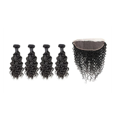 Wolf king water wave 4 bundles with 13*4 HD transparent frontal natural color virgin human hair weft