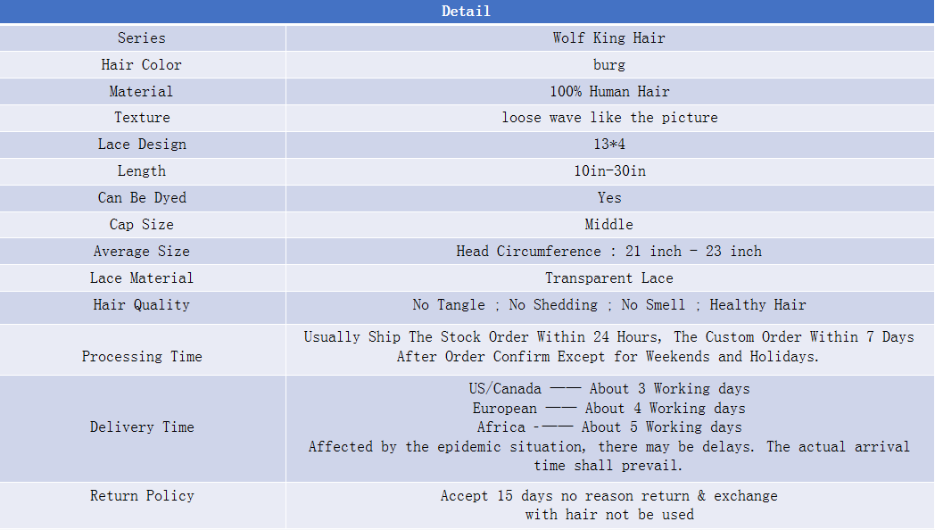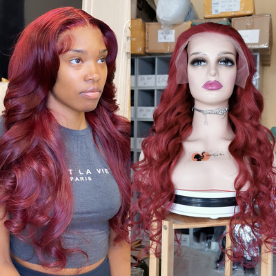 Wolf king burg color loose wave 13*4 transparent frontal lace wig 150% Density