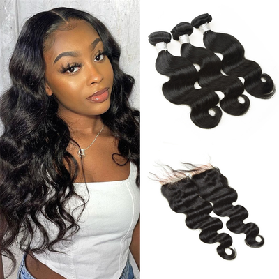 Wolf king body wave 3 bundles with 4*4 HD transparent closure natural color virgin human hair weft
