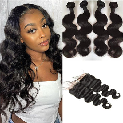 Wolf king body wave 4 bundles with 4*4 HD transparent closure natural color 100% human hair