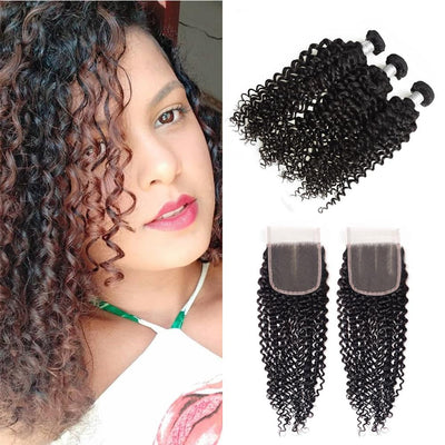 Wolf king curly 3 bundles with 4*4 HD transparent closure natural color 100% human hair
