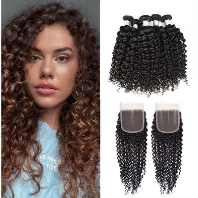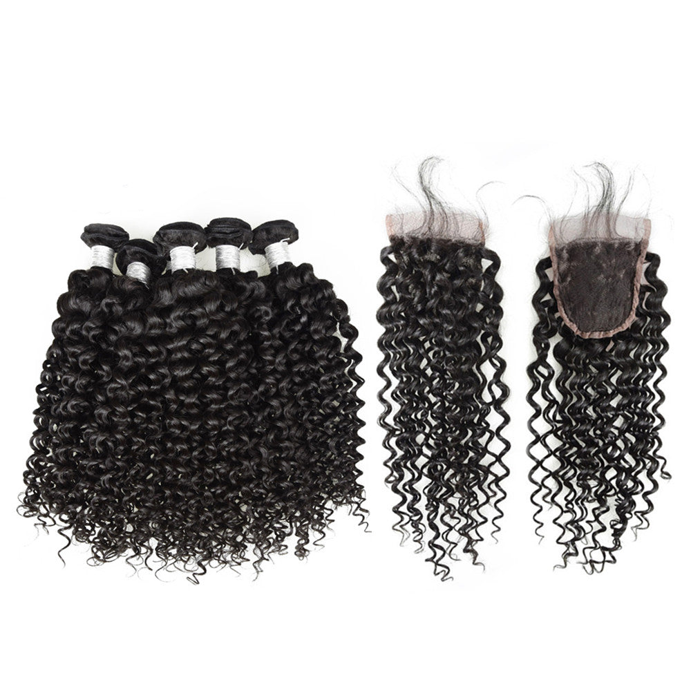 Wolf king curly 4 bundles with 4*4 HD transparent closure natural color 100% human hair