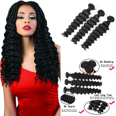 Wolf king deep wave 3 bundles natural color virgin human hair weft