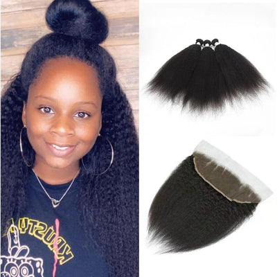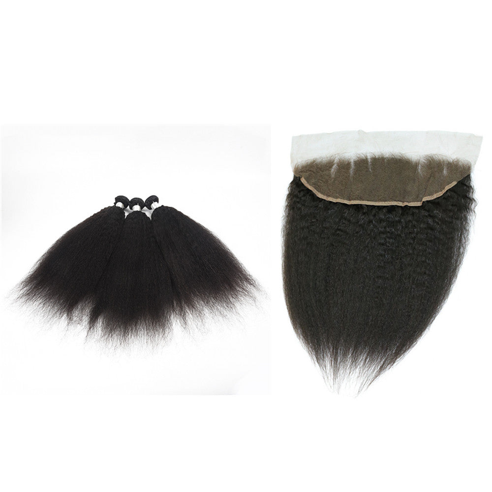 Wolf king kinky straight wave 3 bundles with 13*4 HD transparent frontal natural color 100% human hair