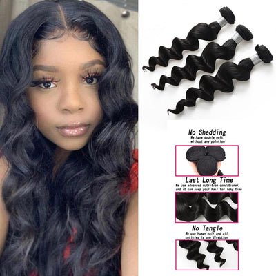 Wolf king loose wave 3 bundles natural color virgin human hair weft