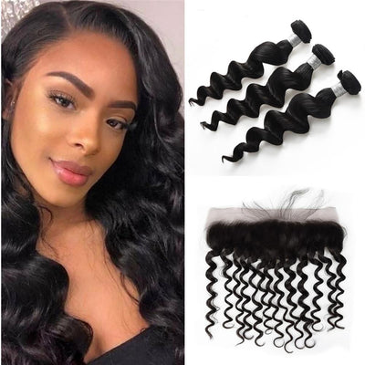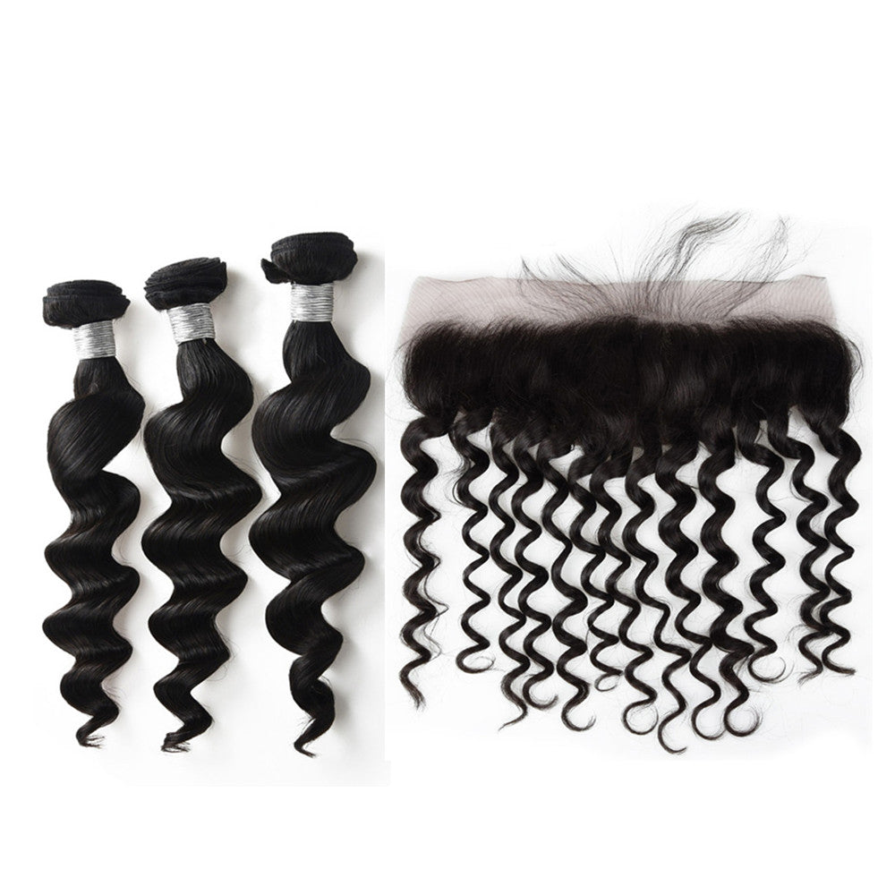 Wolf king loose wave 3 bundles with 13*4 HD transparent frontal natural color 100% human hair