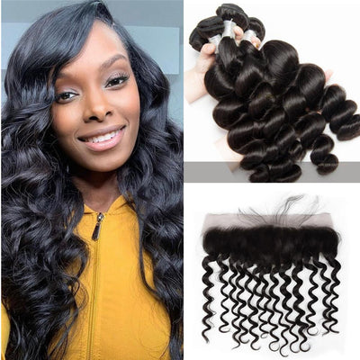 Wolf king loose wave 4 bundles with 13*4 HD transparent frontal natural color virgin human hair weft