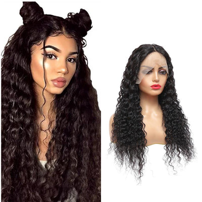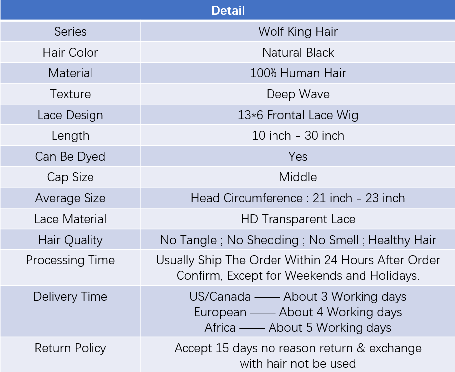 Wolf king deep wave 13*6 HD transparent front lace wig 100% human hair natural color