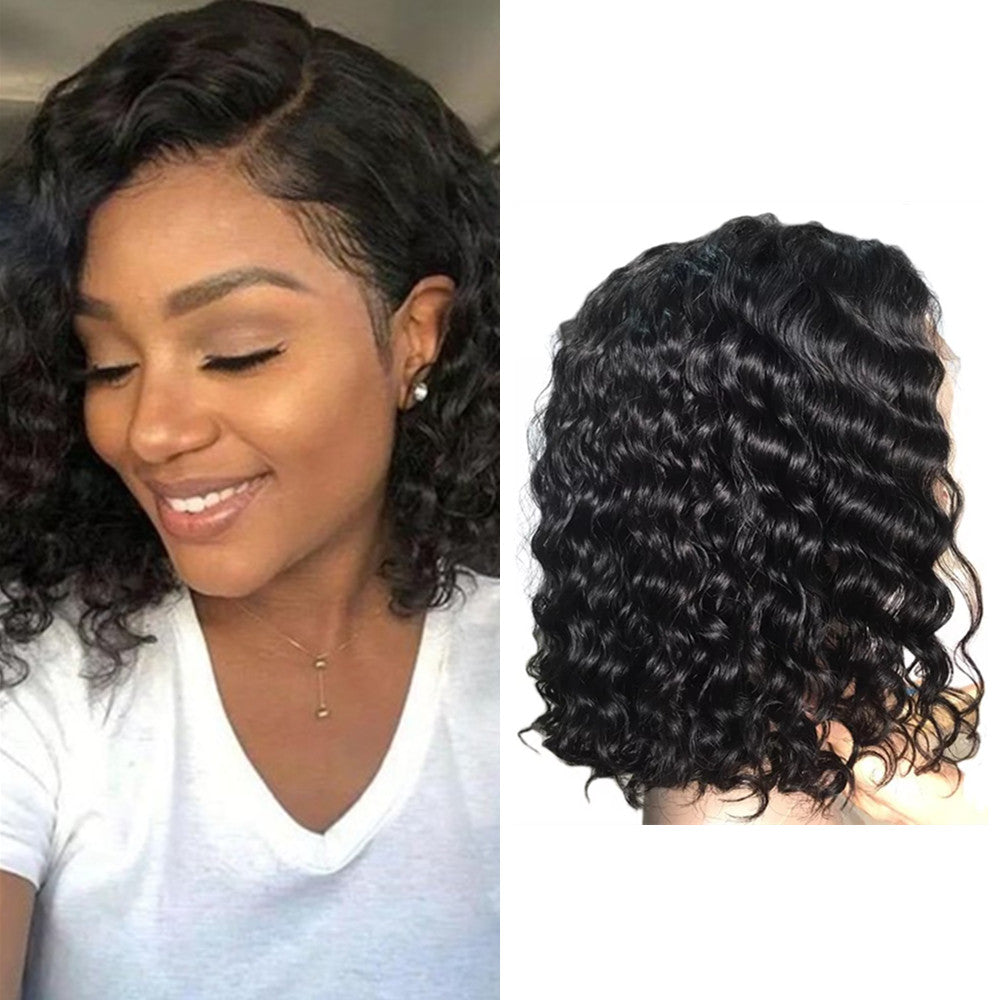 Wolf king deep wave 4*4 HD transparent closure wig 100% human hair natural color