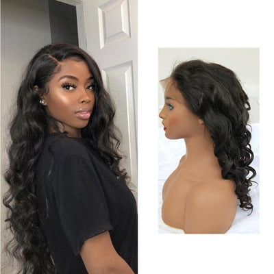 Wolf king loose wave 13*4 HD transparent front lace wig 100% human hair naural color