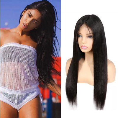 Wolf king straight wave 13*6 HD transparent front lace wig 100% human hair natural color