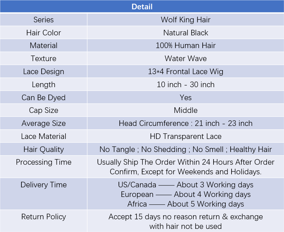 Wolf king water wave 13*4 HD transparent front lace wig 100% human hair naural color